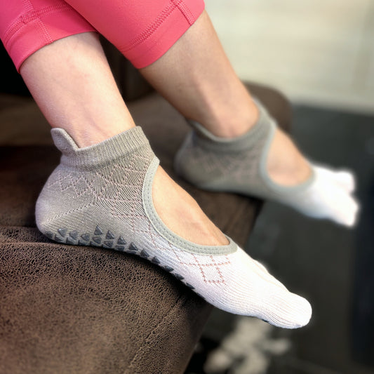 Pink Grey Full Toe Pilates Ankle Grip Socks